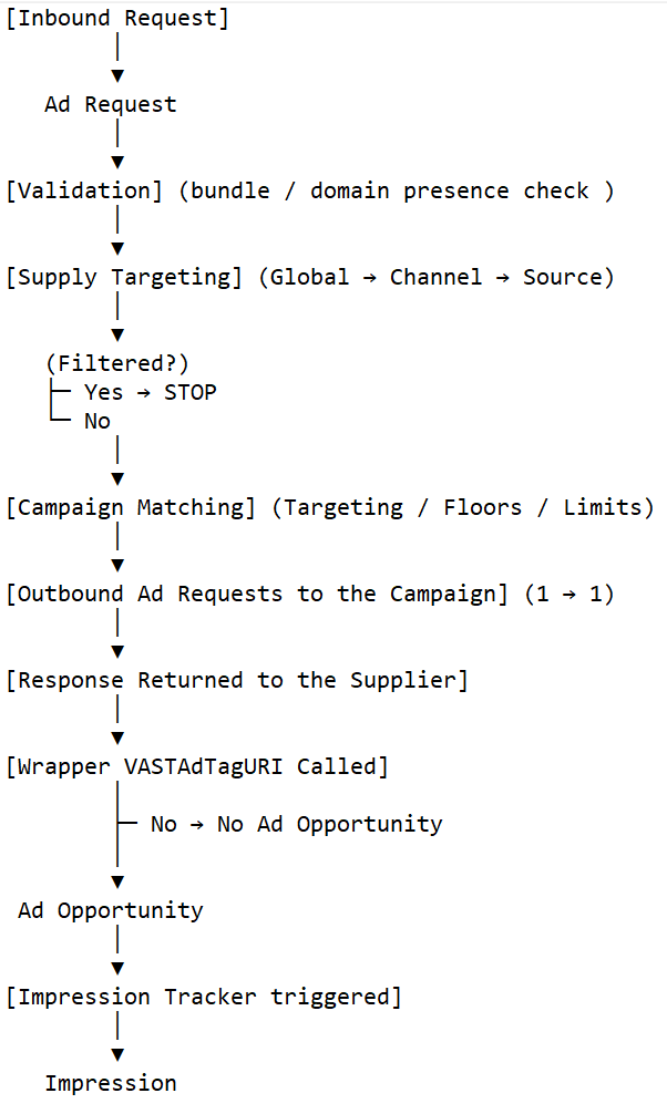 In client-side logic: 1 incoming request → 1 outgoing request to a campaign.